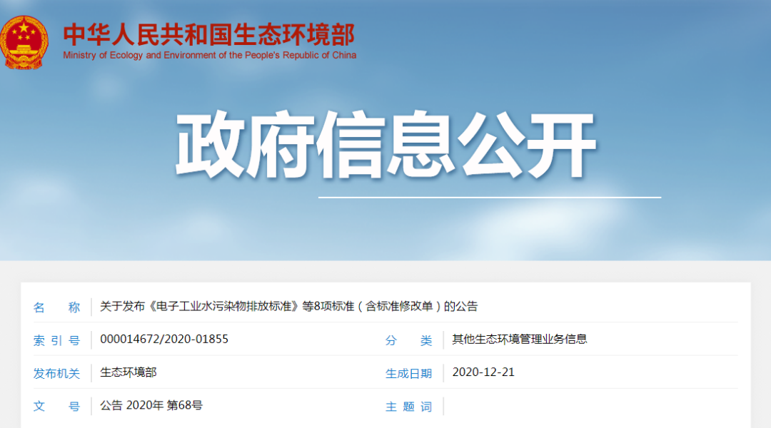關于發布《電子工業水污染物排放標準》等8項標準(含標準修改單)的公告