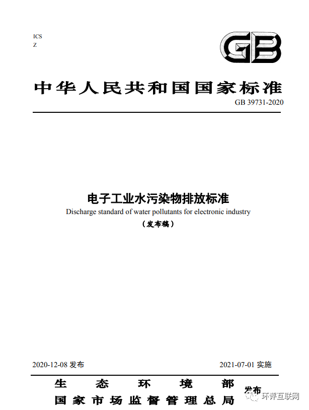 一、《電子工業水污染物排放標準》(GB 39731-2020)