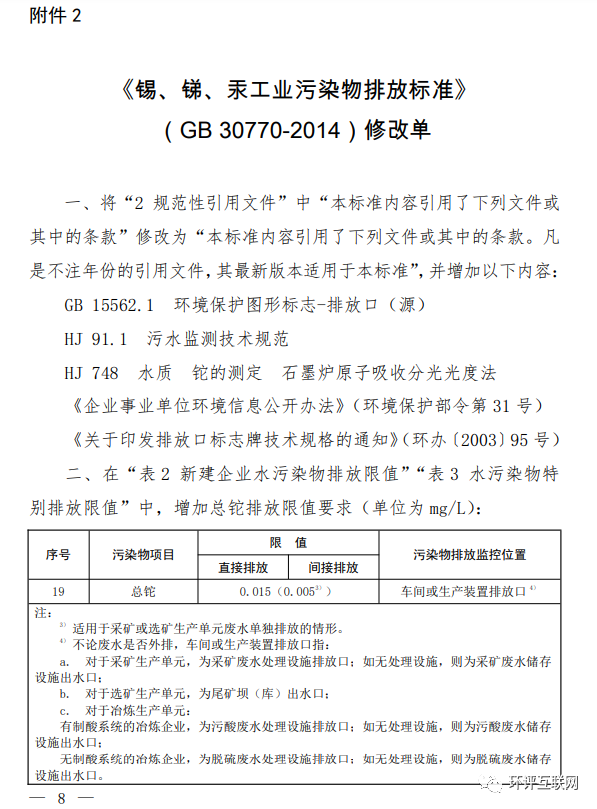 2.《錫、銻、汞工業污染物排放標準》(GB 30770-2014)修改單