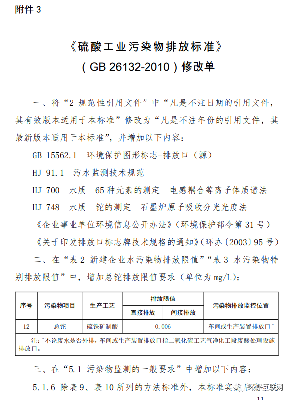 3.《硫酸工業污染物排放標準》(GB 26132-2010)修改單