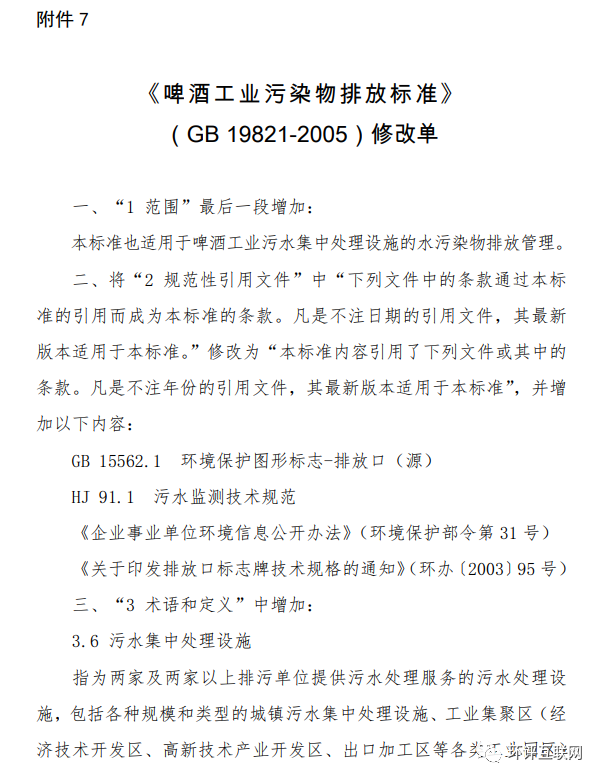 7.《啤酒工業污染物排放標準》(GB 19821-2005)修改