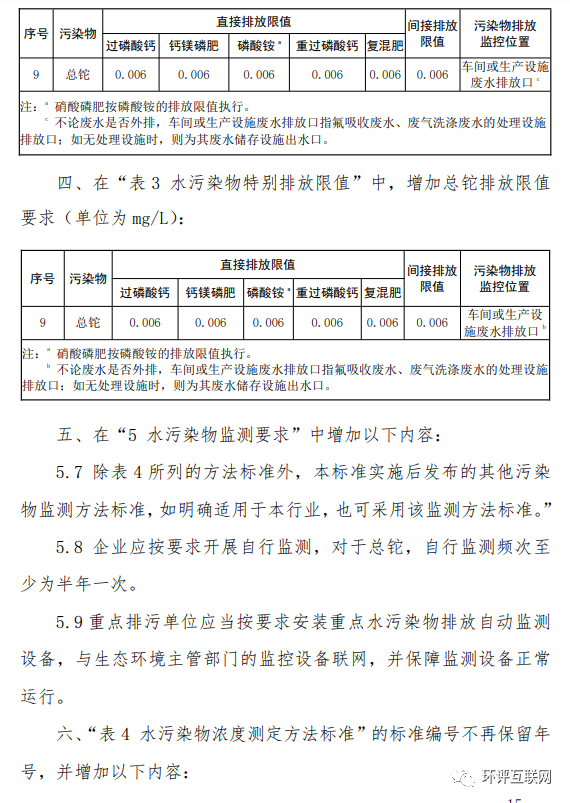 4.《磷肥工業水污染物排放標準》(GB 15580-2011)修改單