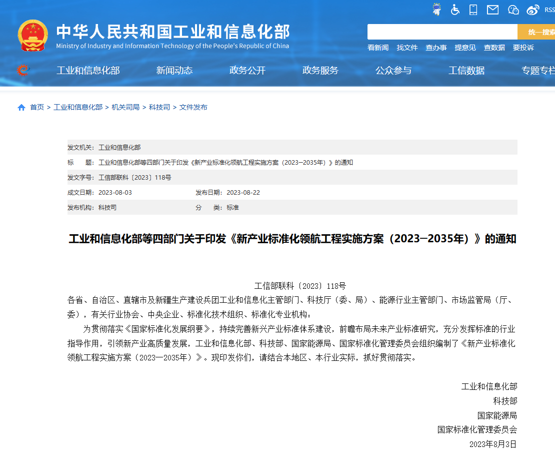 四部門印發(fā)《新產(chǎn)業(yè)標(biāo)準(zhǔn)化領(lǐng)航工程實(shí)施方案(2023—2035年)》