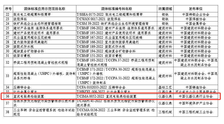 今日,工業和信息化部公布“2023年團體標準應用示范項目的通告”,中國儀器儀表行業協會團體標準《直流電能表檢驗裝置》(T/CIMA0052-2022)獲評工業和信息化部2023年團體標準應用示范項目。
