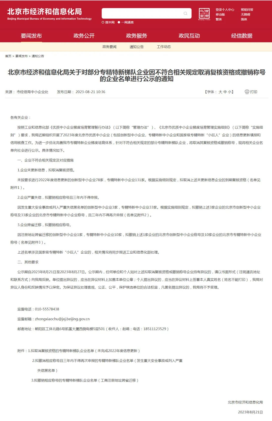 突發,北京174家專精特新中小企業和82家創新型中小企業被取消資質,名單公示!