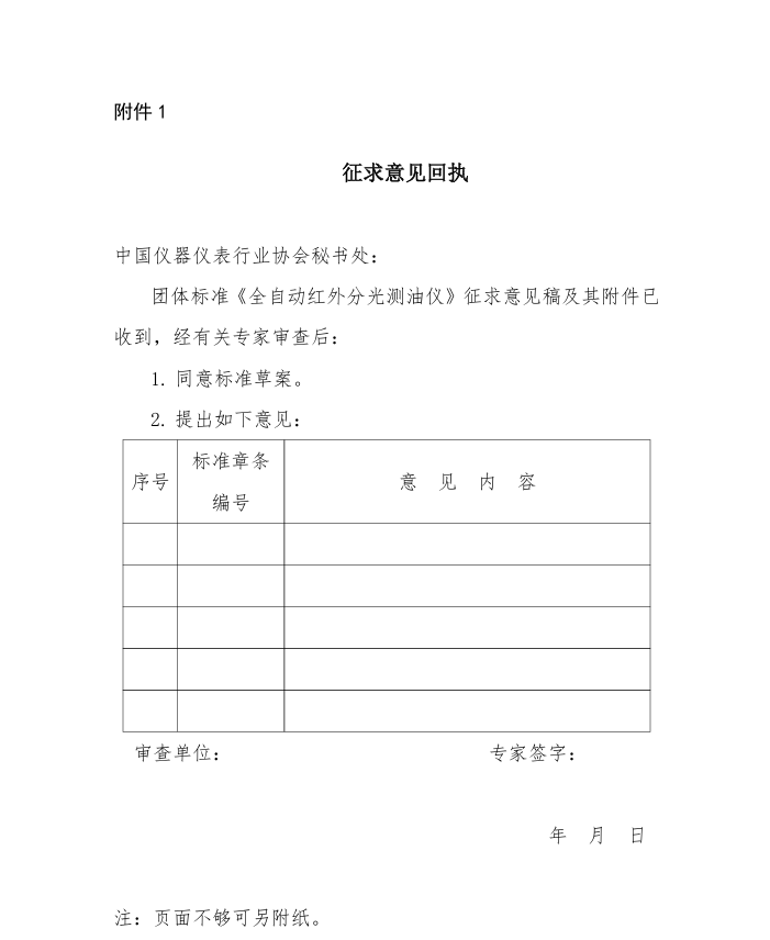 2. 征求意見回執—— 全自動紫外分光測油儀