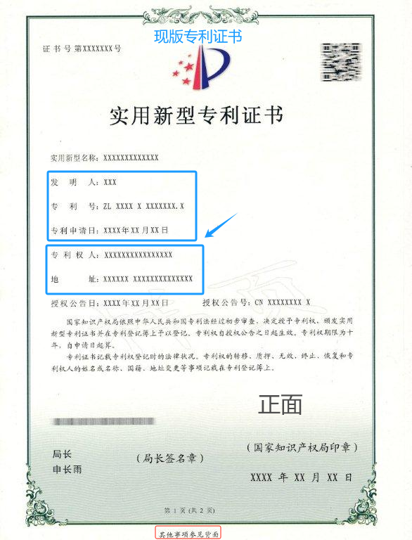 (新版實(shí)用新型專利證書和現(xiàn)版實(shí)用新型專利證書)
