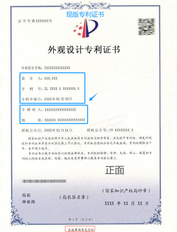 (新版外觀設(shè)計(jì)專利證書和現(xiàn)版外觀設(shè)計(jì)專利證書)