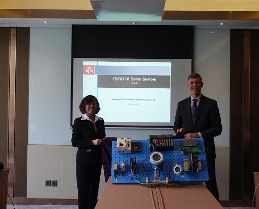 Glenn Schulz先生和譚海玲女士還共同為工作組各成員公司聯合制作的FDT演示墻揭幕。該演示墻基于FDT技術,集成了成員公司的自動化產品,體現了FDT設備集成技術的優勢,將有助于今后的市場推廣活動。