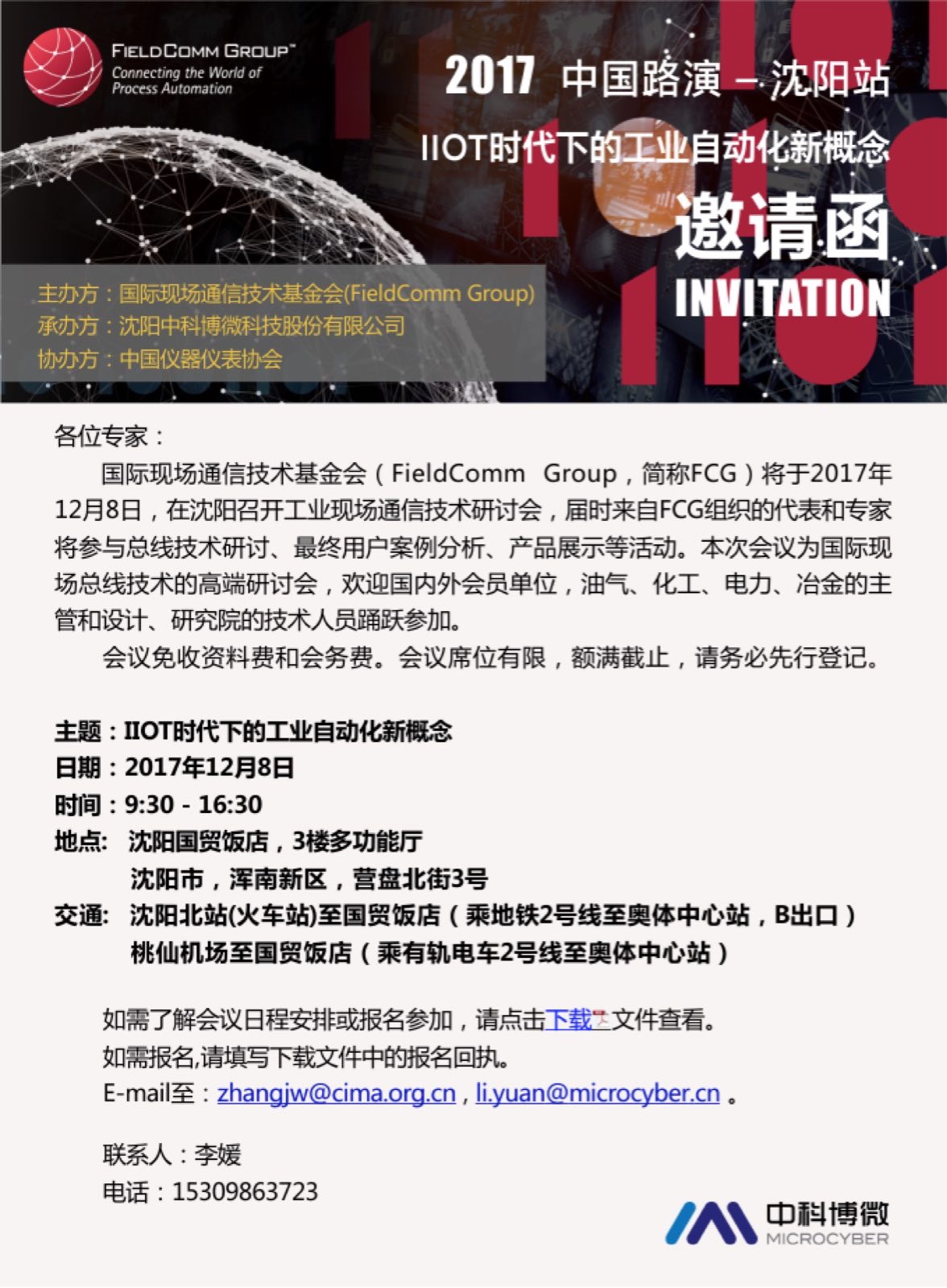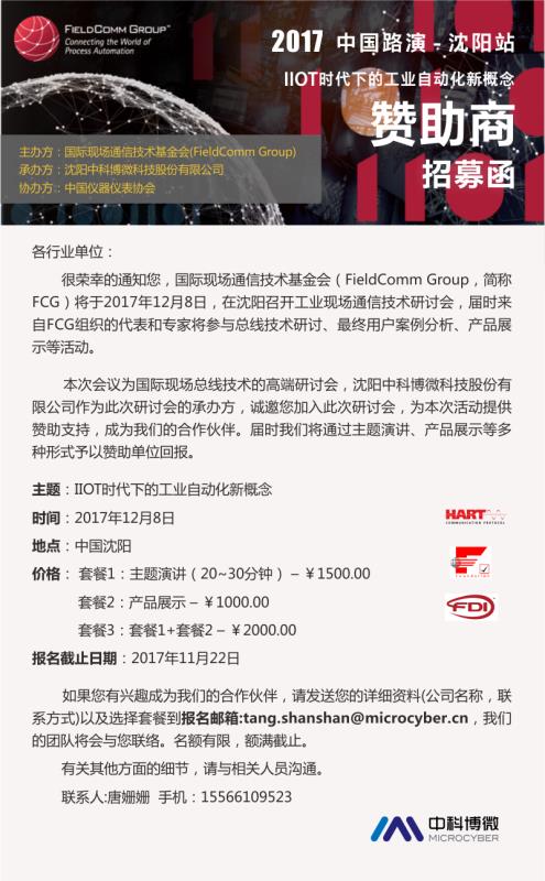 “IIOT時代下的工業(yè)自動化新概念”2017 FCG中國路演–沈陽站會議通知