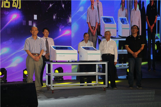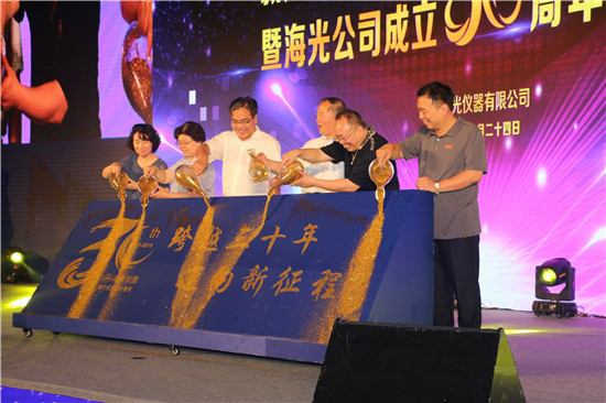 本次慶祝活動上,海光公司隆重發(fā)布HGAF-900系列原子熒光光度計、HGCF系列全自動連續(xù)流動分析儀兩款分析儀器。清華大學鄧勃教授、地礦部物探研究所張錦茂研究員、海光公司第四任總經理劉明鐘、中國儀器儀表學會分析儀器分會榮譽理事長閆成德、原地礦部科技司周金生處長、中國儀器儀表學會常務副秘書長張彤、中國儀器儀表行業(yè)協(xié)會專職副理事長李躍光、中國環(huán)境監(jiān)測總站齊文啟研究員、海光公司原子熒光事業(yè)部經理梁敬、海光公司流動分析事業(yè)部經理宮博共10位嘉賓為新品揭幕。