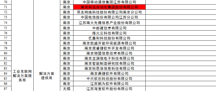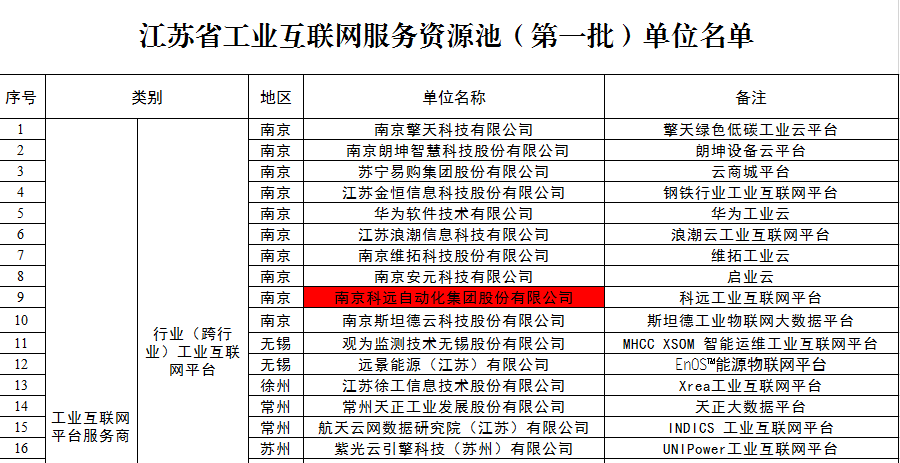 根據(jù)《關(guān)于組織構(gòu)建江蘇省工業(yè)互聯(lián)網(wǎng)服務(wù)資源池的通知》(蘇經(jīng)信企信〔2018〕223號)精神,經(jīng)各地審核推薦、專家評審、實地考察等環(huán)節(jié),科遠股份作為工業(yè)互聯(lián)網(wǎng)平臺服務(wù)商、工業(yè)互聯(lián)網(wǎng)解決方案服務(wù)商、數(shù)據(jù)采集服務(wù)商,入圍江蘇省工業(yè)互聯(lián)網(wǎng)服務(wù)資源池(第一批)。