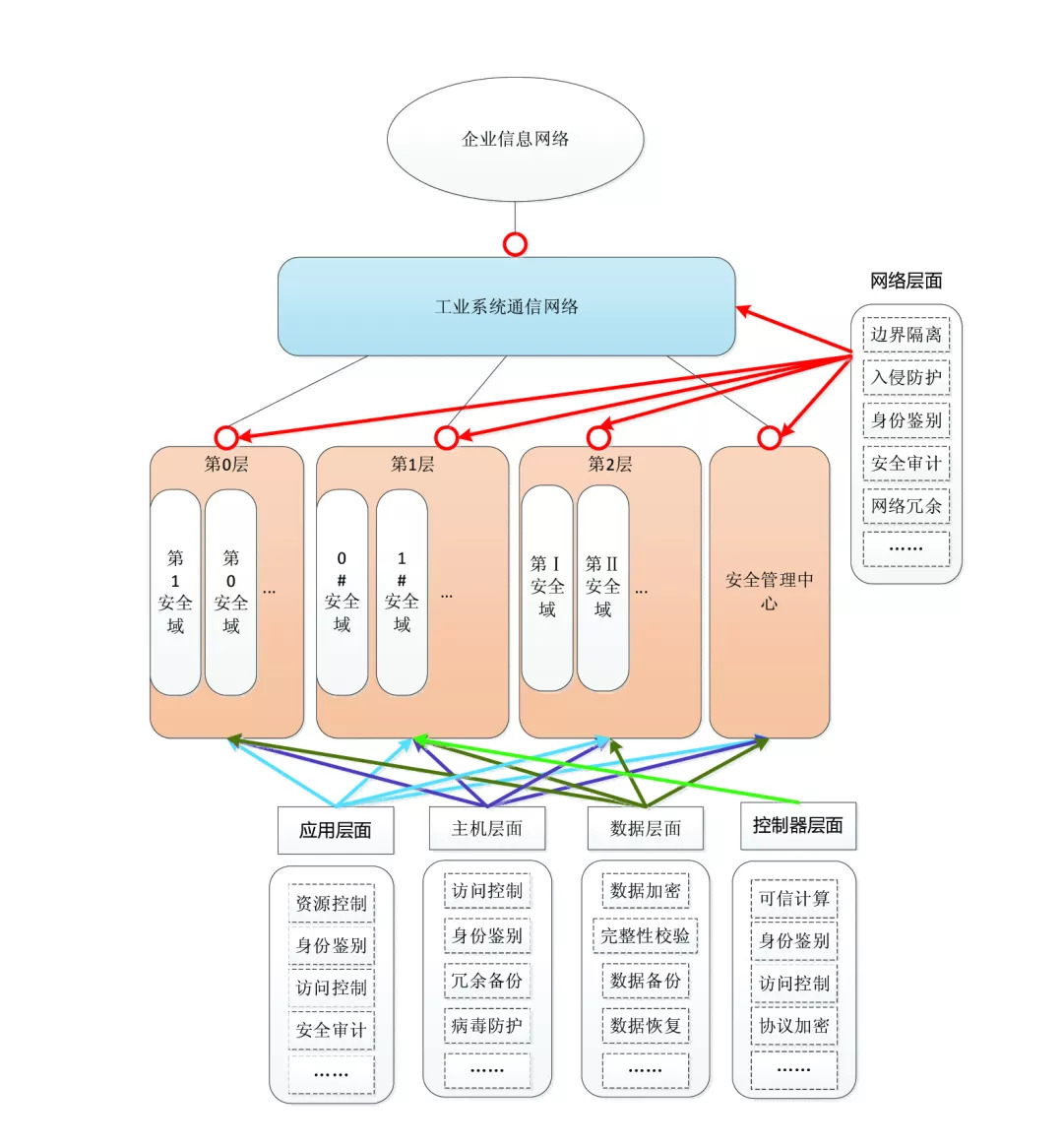 縱深防護機制在以上防護策略的基礎上,對不同層級采用不同針對性的安全措施,從而保護工業控制系統內的資產和網絡安全。