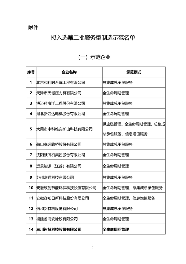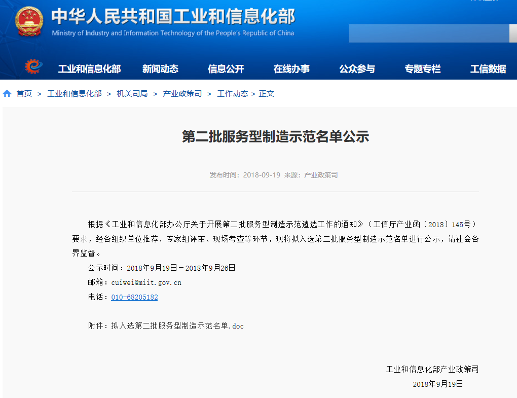 9月19日,根據(jù)《工業(yè)和信息化部辦公廳關于開展第二批服務型制造示范遴選工作的通知》(工信廳產(chǎn)業(yè)函〔2018〕145號),工信部官網(wǎng)公示第二批服務型制造示范名單,北京和利時系統(tǒng)工程有限公司以“總集成總承包服務”、三川智慧科技股份有限公司以“全生命周期管理”示范模式成功入圍。