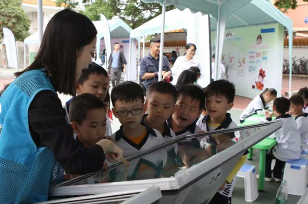 啟動儀式后,領(lǐng)導(dǎo)、嘉賓移步參觀全國兒童食品安全移動體驗營。兒童食品安全移動體驗營設(shè)置了5個區(qū)域:服務(wù)中心、清潔好習(xí)慣體驗區(qū)、食品溯源及安全體驗區(qū)、營養(yǎng)膳食體驗區(qū)以及綜合體驗區(qū),吸引了眾多孩子前往體驗,潛移默化地讓孩子們有機會了解更多的兒童食品知識,對兒童的健康產(chǎn)生長遠(yuǎn)的積極影響。