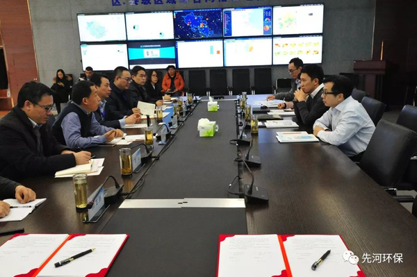 鮑董一行參觀了公司展廳、生態環境大數據應用中心,先河集團總裁陳榮強向來賓們介紹了集團整體情況。先河集團目前憑借技術創新、模式創新、應用創新,從設備制造商轉型成為大數據綜合應用和區域環境治理綜合服務商,并最終轉型成為全產業鏈綜合服務商。目前各級政府對環境改善的壓力非常大,采取多種方式進行環境管理和污染治理。先河基于“環保+物聯網”和“大數據”的先進設計思想,通過自主創新,率先在業內推出的生態環境網格化系統,系統配備三級修正、四級校準體系,保證數據的有效性,目前已在100多個城市推廣應用,為生態環境的精細化監測、污染防治提供更加了實實在在的技術支撐和保障。而在大數據應用上,公司利用環境數據,結合地理信息、氣象信息,進行環境分析研判,協助各地用戶診斷環境問題、科學減排。目前在大氣及水環境領域,已有相對成熟的應用經驗。
