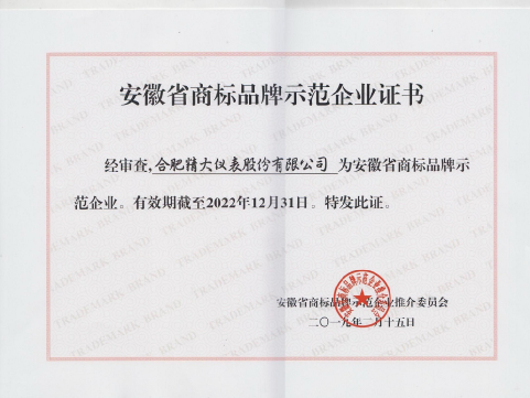 經(jīng)安徽省商標(biāo)品牌示范企業(yè)推介委員會(huì)認(rèn)定,合肥精大儀表股份有限公司獲批“安徽省商標(biāo)品牌示范企業(yè)”。