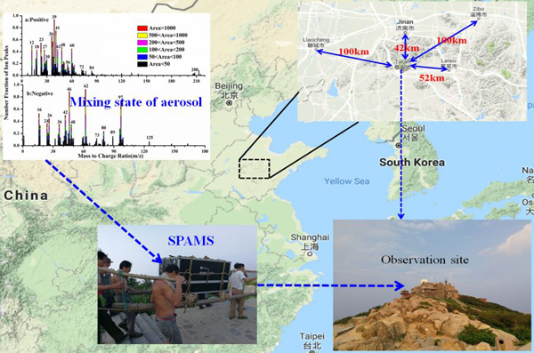 南京信息工程大學(xué)銀燕教授團隊,于2017年夏季在泰山玉皇頂開展氣溶膠綜合觀測實驗,首次使用單顆粒飛行時間質(zhì)譜儀(SPAMS,廣州禾信)研究了泰山頂氣溶膠混合狀態(tài)及其粒徑分布特征,并探討氣溶膠混合狀態(tài)對新粒子增長過程的影響。