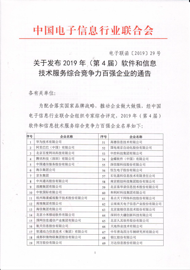 2019年6月28日,由工信部指導、中國電子信息行業聯合會主辦的“2019中國軟件和信息技術服務綜合競爭力百強企業”榜單在2019第二十三屆中國國際軟件博覽會期間發布。新一屆軟件和信息技術服務綜合競爭力百強企業的特點為規模效益不斷提升、研發創新成效顯著、新興領域加速成長、國際布局全面深化、支撐作用持續增強。和利時作為中國領先的自動化與信息技術解決方案供應商,憑借良好的發展態勢,強勁的創新能力,規范的企業管理,在智能制造領域的突出貢獻等,最終斬獲殊榮。
