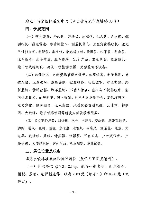 由中國測繪學會、中國儀器儀表行業(yè)協(xié)會主辦的第九屆中國測繪地理信息技術裝備博覽會定于2019 年10 月15 至17 日在江蘇省南京市舉行。博覽會將與中國測繪學會2019 年學術年會同期舉辦。