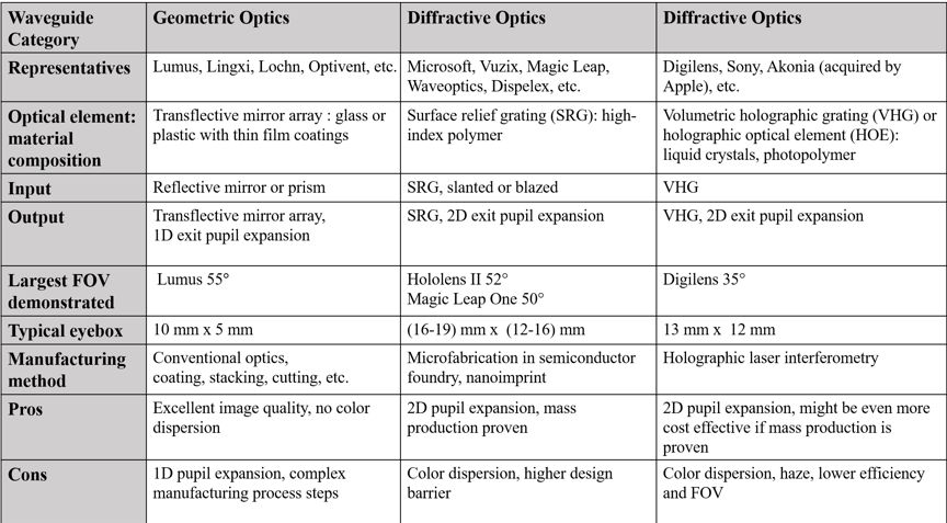 • 幾何波導: 繁冗的制造工藝流程導致總體良率較低。