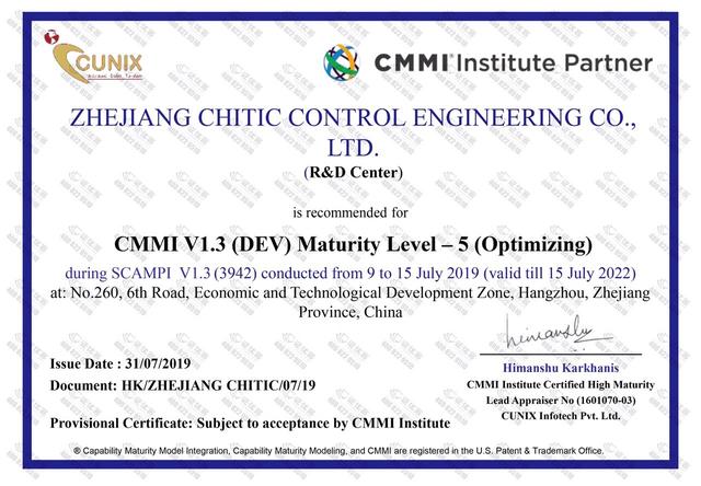 近日,浙江正泰中自控制工程有限公司順利通過軟件能力成熟度集成模型最高等級(jí)CMMI ML-5級(jí)認(rèn)證。該認(rèn)證的通過,標(biāo)志著正泰中自的軟件研發(fā)能力與管理水平已經(jīng)達(dá)到國際最高標(biāo)準(zhǔn),已具備全球頂級(jí)的軟件成熟度及軟件項(xiàng)目管理能力,可提供融合新思想、新技術(shù)、可持續(xù)優(yōu)化的軟件產(chǎn)品。