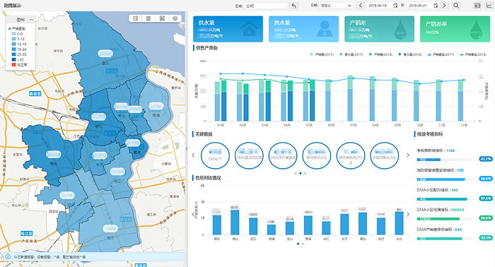 在探索智慧水務綜合管理方面,上海儀電聯合上海城投水務,合作開發了基于“物聯網+互聯網+云平臺”架構設計的智慧水務綜合管理平臺——“供水管網智能計量管理系統”。該平臺覆蓋了全水務鏈水量計量管理過程,實現了計量設備管理、遠傳數據管理、數據統計和產銷差分析等功能,可廣泛應用于城市供水管網系統中。通過該平臺,供水管網各個分區的供水信息計量數據能夠實時傳輸到系統,系統再通過大數據分析、挖掘和預判,幫助供水公司快速定位漏損點,完成檢漏修漏。