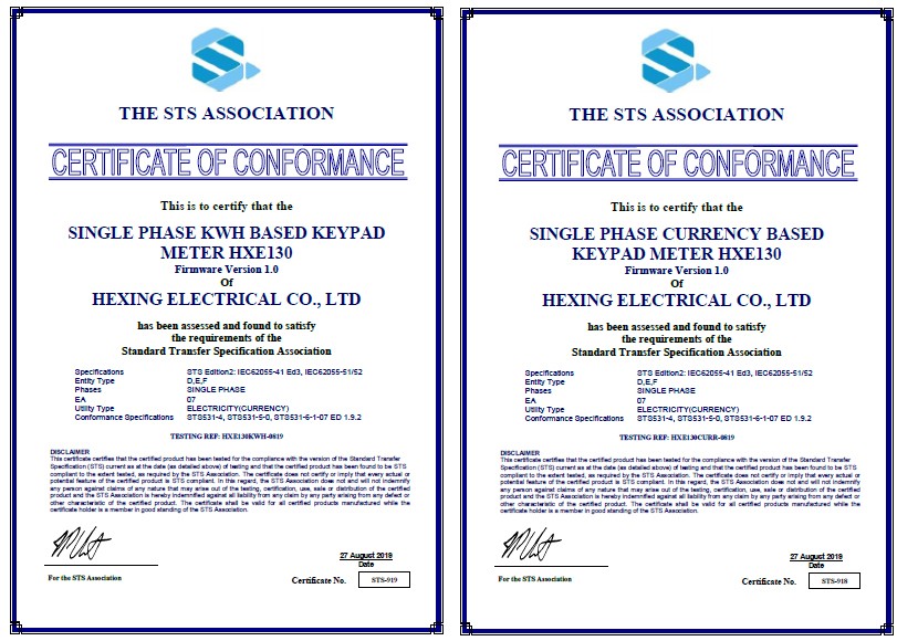 近日,海興預付費表計成功通過STS認證測試取得STS2.0證書,這標志著海興是全球首家通過STS2.0完整和穩定一致性測試配套規范標準(STS531 1.9.2系列)的廠家。海興做為STS協會的投票會員,參與第2版STS規范的討論與修訂,緊跟協會的步伐全面提升預付費表計的解決方案,夯實了海興在國際預付費表計的領先技術地位。