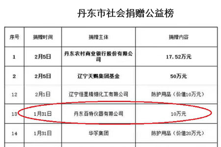 2月8日上午,丹東百特黨支部將凝聚著33名黨員和136名員工拳拳愛國之心的51500元的特殊黨費匯到中共丹東市委組織部。市委組織部領導稱贊百特是“愛黨愛國的典范,抗擊疫情的榜樣”。