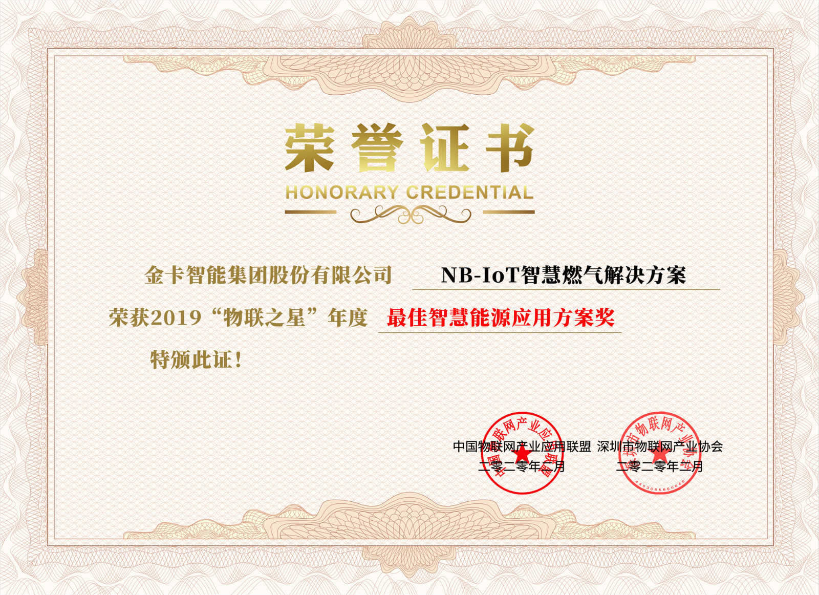2月25日,由中國(guó)物聯(lián)網(wǎng)產(chǎn)業(yè)應(yīng)用聯(lián)盟、深圳市物聯(lián)網(wǎng)產(chǎn)業(yè)協(xié)會(huì)主辦、物聯(lián)傳媒承辦的2019物聯(lián)之星中國(guó)物聯(lián)網(wǎng)行業(yè)年度評(píng)選落下帷幕,金卡智能斬獲“最具投資企業(yè)獎(jiǎng)”、“最有影響力物聯(lián)云平臺(tái)企業(yè)獎(jiǎng)”、“最佳智慧能源應(yīng)用方案獎(jiǎng)”,楊斌董事長(zhǎng)榮獲“年度卓越人物獎(jiǎng)”,成為獲獎(jiǎng)最多的企業(yè)之一。