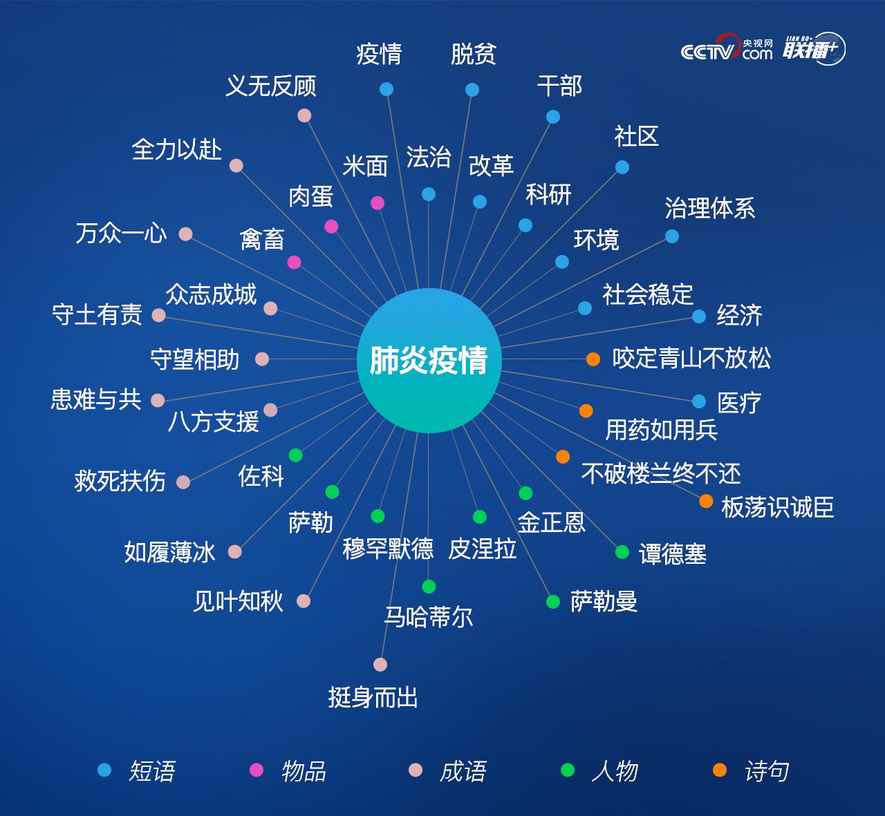 從關(guān)聯(lián)短語(yǔ)中我們可以看到,此次疫情不僅是一次公共衛(wèi)生事件,并涉及到治國(guó)理政的方方面面。疫情發(fā)生以來(lái),習(xí)近平還曾主持召開(kāi)中央全面依法治國(guó)委員會(huì)、中央網(wǎng)絡(luò)安全和信息化委員會(huì)、中央全面深化改革委員會(huì)、中央外事工作委員會(huì)等會(huì)議,從不同角度對(duì)做好疫情防控工作提出要求。