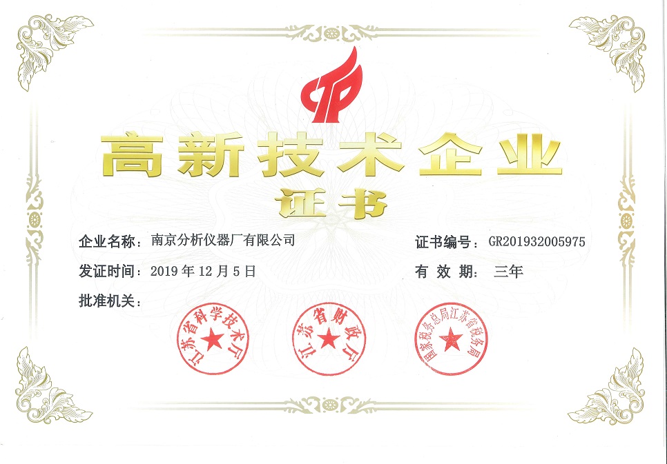經(jīng)過江蘇省科學(xué)技術(shù)廳、江蘇省財(cái)政廳和國(guó)家稅務(wù)總局江蘇省稅務(wù)局的綜合評(píng)定,南京分析儀器廠有限公司再次獲得國(guó)家高新技術(shù)企業(yè)稱號(hào)。