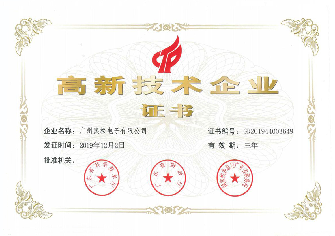 2020年4月13日,廣州奧松電子有限公司在去年12初復(fù)審的“高新技術(shù)企業(yè)證書”正式審批發(fā)放。據(jù)悉,2016年,科技部、財政部、國家稅務(wù)總局三部門對2008年的高新認定管理辦法及工作指引進行了重新修訂,高新技術(shù)企業(yè)認定與舊的政策相比,申請門檻提高了不少,所以高新技術(shù)企業(yè)的認證并不好通過。