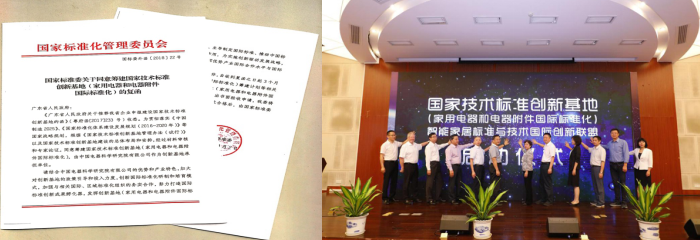 2018年4月2日, 國(guó)標(biāo)委外函【2018】22號(hào) 國(guó)家標(biāo)準(zhǔn)委批準(zhǔn)籌建國(guó)家技術(shù)標(biāo)準(zhǔn)創(chuàng)新基地(家用電器和電器附件國(guó)際標(biāo)準(zhǔn)化)。承擔(dān)單位:中國(guó)電器科學(xué)研究院有限公司(以下簡(jiǎn)稱中國(guó)電研),組織申報(bào)單位:廣東省市場(chǎng)監(jiān)督管理局,推薦單位:廣東省人民政府。