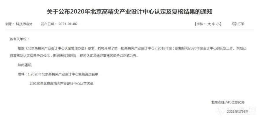 近日,北京市經濟和信息化局公布了2020年北京高精尖產業設計中心認定及復核結果,北京海光儀器有限公司(簡稱“海光公司”)榜上有名,被認定為北京高精尖產業設計中心。