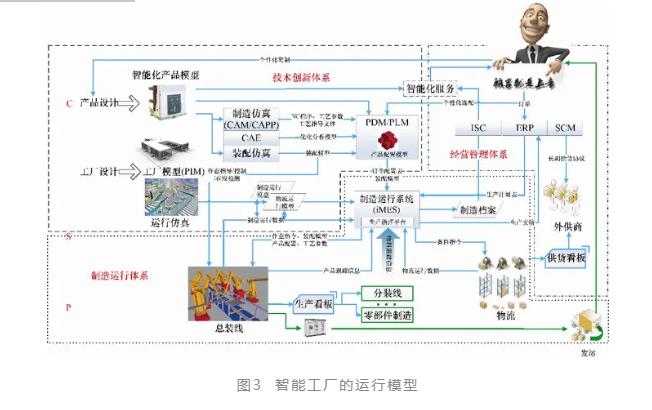 在對企業的調研中我們發現,企業雖然在許多關鍵點上都采用了先進的數字化和信息化手段進行智能制造的升級,但是造成其生產力仍然不足的一個很大原因卻是缺少整體規劃。由于缺少整體規劃,已經實施的各種技術和系統缺少集成的設計,他們大多只在各自的功能范圍內發揮作用,而缺少與其他功能的協同機制,甚至由于邊界的重疊,還有可能產生沖突,因而使得轉型升級的整體效果打了折扣。我們知道,智能工廠包括了三個支撐體系:技術創新體系、經營管理體系和制造運行體系,如圖3所示。
