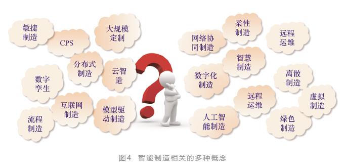 筆者接觸的一位礦山機械裝備制造企業的老總曾經發出感慨:智能制造的概念在學習了一段時間以后變得清晰了,但是在打算深入開展相關工作后,接觸了不少智能制造的供應商和解決方案,又讓這些概念變得模糊了,因此企業雖然實施智能制造轉型升級的欲望強烈,但卻躊躇不前。在筆者參與對企業進行的診斷過程中,這樣的困惑很有代表性。智能制造相關的概念如圖4所示。