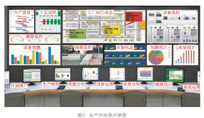 誠然,由于中控室可以通過匯集生產數據并通過大屏幕生動地表示出來,如圖6所示,具有較好的展示效果,因而成為許多企業展示智能化改造升級效果的重要方式。但其實這只是中控室作用的副產品,人們往往忽略了中控室作為一種先進的管控模式的本源。在傳統的生產車間中,圍繞生產提供保障和服務的有許多業務部門,如生產調度、生產工藝、物流配送、質量檢驗和設備維修等。這些部門一般都有各自的辦公室。當生產中出現問題時,作業人員一般需要通過電話甚至跑腿的方式去通知相關的部門或人員到現場解決問題,有一些問題可能涉及多個業務部門。這種分散的生產現場管控方式效率低下,特別不適應現代化生產的要求。而中控室就是一個各個業務部門集中辦公的地方,業務人員可以通過先進的信息化、數字化技術匯集數據,對生產過程中出現的問題聯合做出快速響應,保障生產過程的平穩和有序。在筆者接觸到的許多企業中,人們更多的卻是關心中控大屏的展示效果,而對這種大屏展示背后的先進生產模式缺少真正的認識。這種重表象而輕內涵的實施方法是十分普遍的。