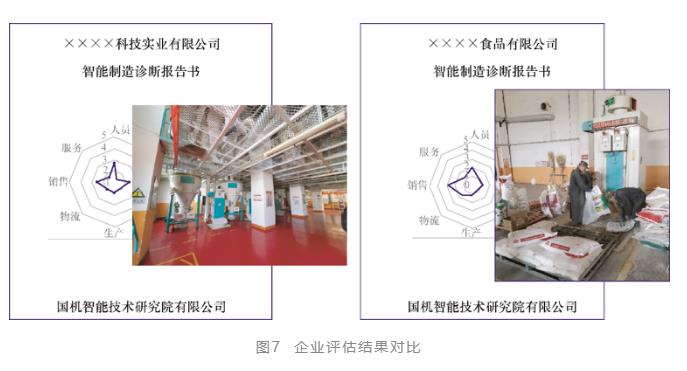 無疑這兩項標準對如何評價企業的智能制造水平提供了一個比較完整的框架,其中的指標也具有普遍的意義。但是在我們的應用中卻發現,標準對于單一企業來說,在確定企業的薄弱環節及持續改進目標具有一定的引導意義,但是用于對多個企業進行評估并橫向比較時,卻會出現一個較為明顯的現象:一個看起來制造過程自動化程度很高,作業過程無人化、少人化水平先進,具有集成化管控水平的生產企業,其得分比一些作業過程較多依靠人力、管控模式分散的企業得分并沒有明顯的優勢。這樣的評分結果與現場診斷的觀感形成了較大落差,如圖7所示。