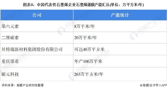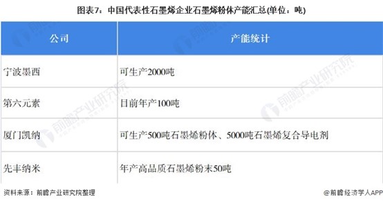 石墨烯代表性企業產能情況