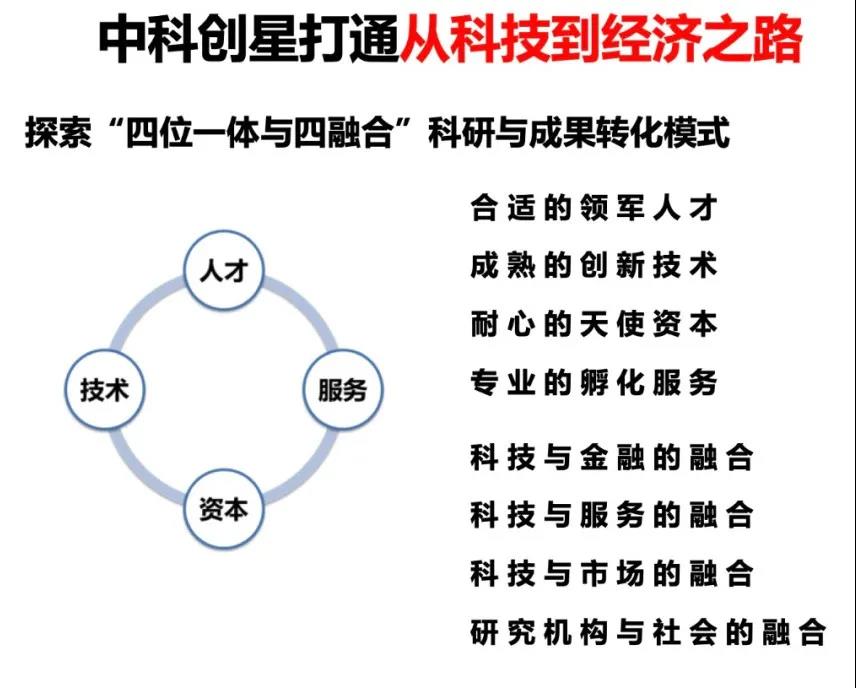 所以,我們從2012年到現在一直致力于做科技成果轉化,打通科技到經濟之間的通路,通過人才、技術、資本和服務去推動硬科技的發展,推動中國的高校和科研院所,用他們的科技成果去推動中國經濟的發展,去推動中國的企業轉型升級,如果沒有科技創新對整個經濟的輸入,那中國的經濟是不可能有可持續發展的。