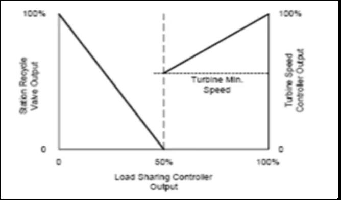 1) 需要升高出口壓力及出口流量時,控制系統(tǒng)會首先關(guān)閉防喘振閥,而后再開靜葉。