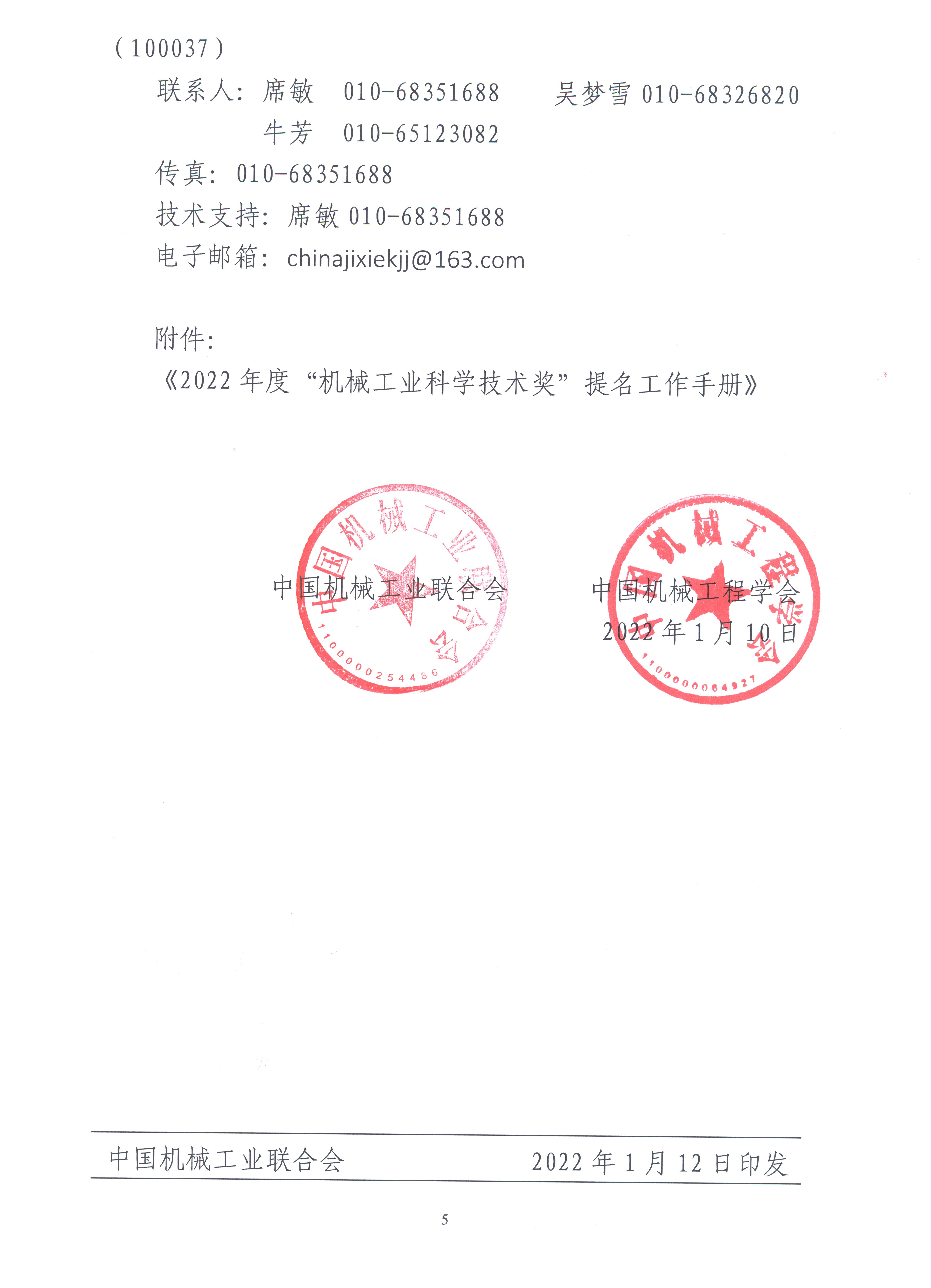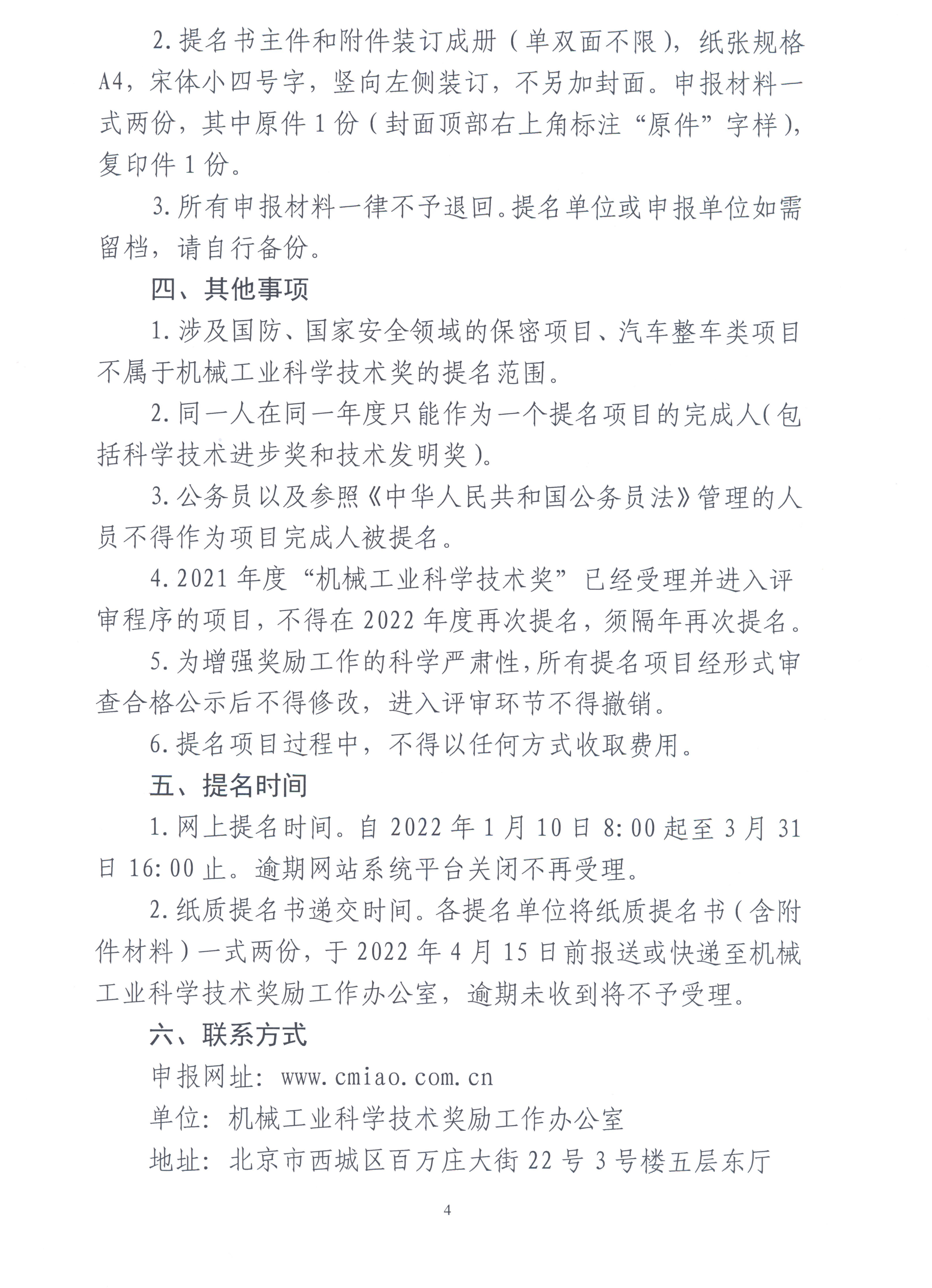 摘要:2022年度“機械工業科學技術獎”提名工作將于2022年1月10日至3月31日進行,機械工業科學技術獎勵工作辦公室現將有關通知發布。