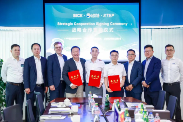 在西克中國總經理王平先生、副總經理丁伯祥先生的陪同下,Mats Goekstorp博士和焦總一起,與國內前沿的機器人研發制造企業新時達、輪胎激光刻字開創者崮德智能簽訂了戰略合作協議。這是一項具有里程碑意義的合作,將為集團帶來巨大的發展潛力。通過與這些企業的合作,我們有信心在全球市場特別是中國市場中保持競爭優勢。