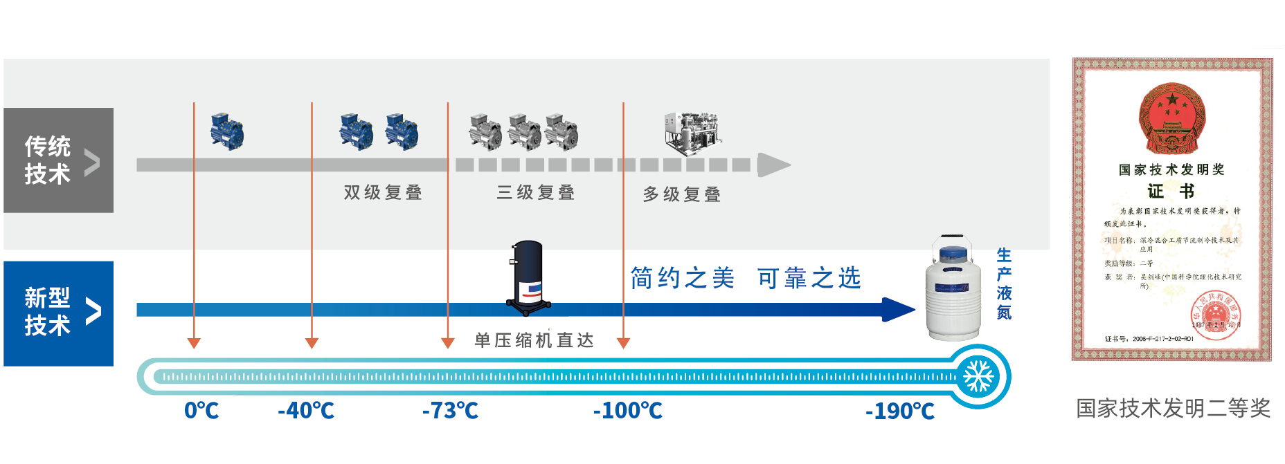 無需液氮制冷,使用一臺壓縮機即可實現機械制冷直達-190℃超低溫。
