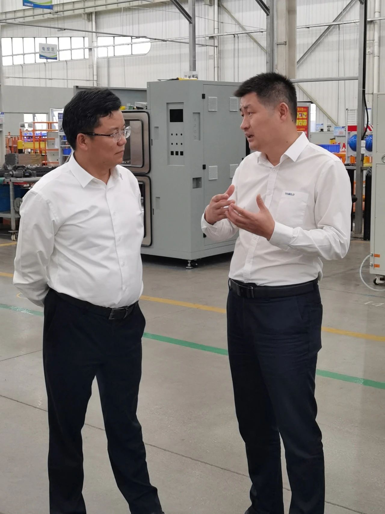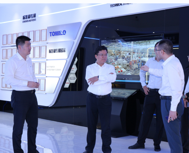 20231011日,昆山市副市長錢許東蒞臨拓米洛調研考察。工信部賽迪研究院科技處處長董凱、市工信局局長徐康、陸家鎮人大主席顧劍等相關領導陪同,拓米洛董事長姚成林、副董事長廉照才全程陪同參觀,并熱情接待。