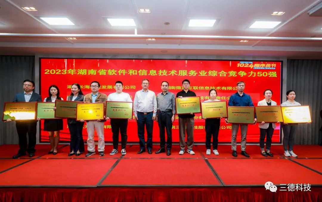 10月24日,三德科技相關負責人代表公司受邀出席由湖南省工業(yè)和信息化廳、湖南湘江新區(qū)管理委員會指導,長沙市工業(yè)和信息化局、長沙信息產業(yè)園管委會、CSDN主辦,湖南省軟件行業(yè)協會、國家超級計算長沙中心承辦的2023長沙•中國1024程序員節(jié)——湖南“智賦萬企”軟件產業(yè)高質量發(fā)展論壇,會上發(fā)布2023年湖南省軟件和信息技術服務業(yè)綜合競爭力企業(yè)50強報告及50強榜單,三德科技榜上有名,我司代表上臺領取獎牌。