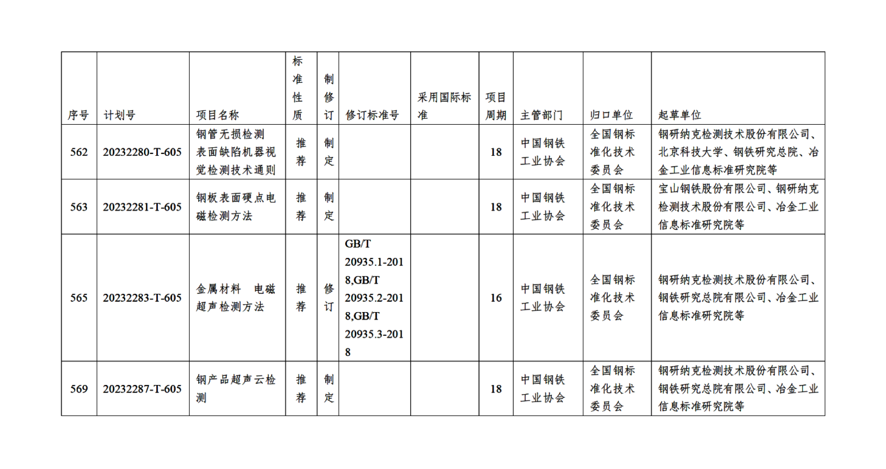 ✭ 鋼研納克無損檢測專業牽頭起草標準3項、參研1項(其中3項標準制定、1項標準修訂)