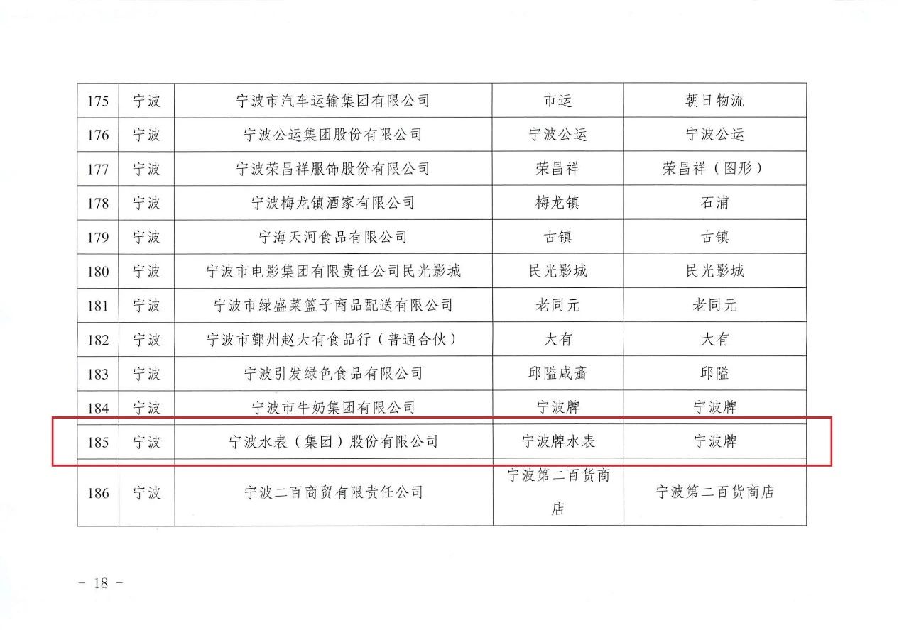 浙江省商務(wù)廳等四部門近日發(fā)布的前六批“浙江老字號”復(fù)核名單及第七批“浙江老字號”認(rèn)定結(jié)果顯示,“寧波”牌水表順利通過復(fù)核。