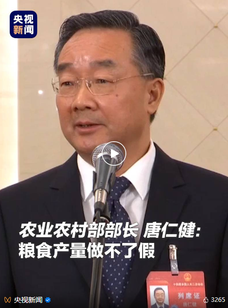 農(nóng)業(yè)農(nóng)村部部長唐仁健: